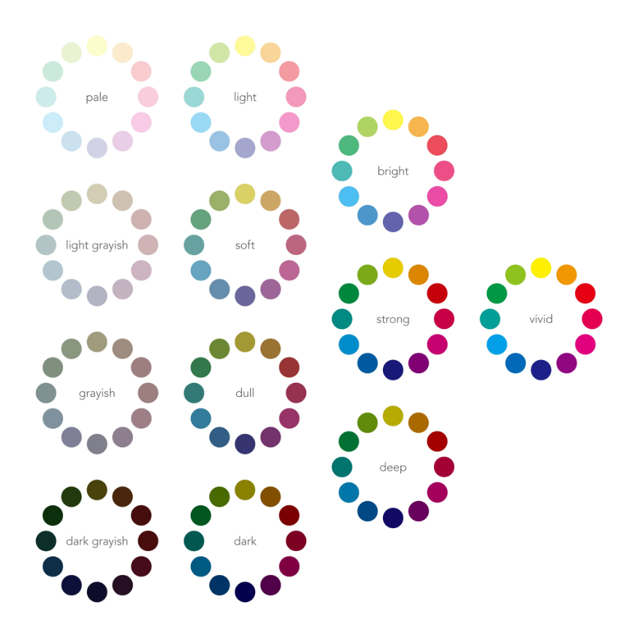 配色のパターンはそれこそ本1冊で語りつくせないくらいにありますので細かいことは割愛しますが、色の3要素(色相・明度・彩度)+トーンというのは押さえておきたいところです。