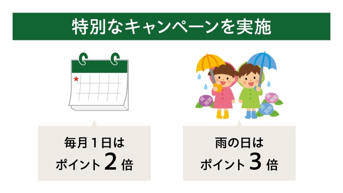 「○○の日はポイント2倍」「雨の日は3倍」など、イベントと組み合わせることでお客様の来店動機を強化できます。