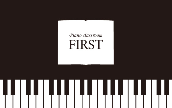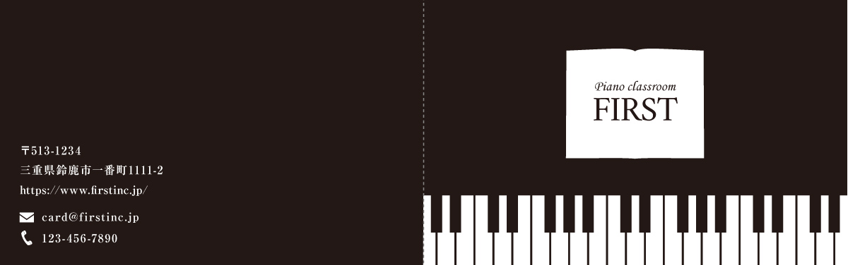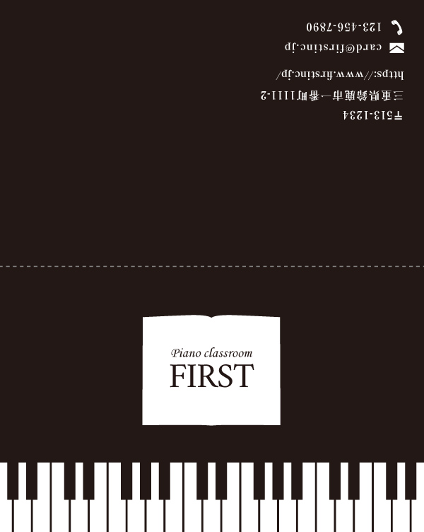 鍵盤と楽譜が描かれたデザイン。全体が黒く締まった印象ですが、筆記体を用いることによって柔らかさをプラスしています。ナカ面には次回のレッスン時間を書き込めるような仕様にすればメンバーズカードとしても、またスタンプカードとしても使用できます!