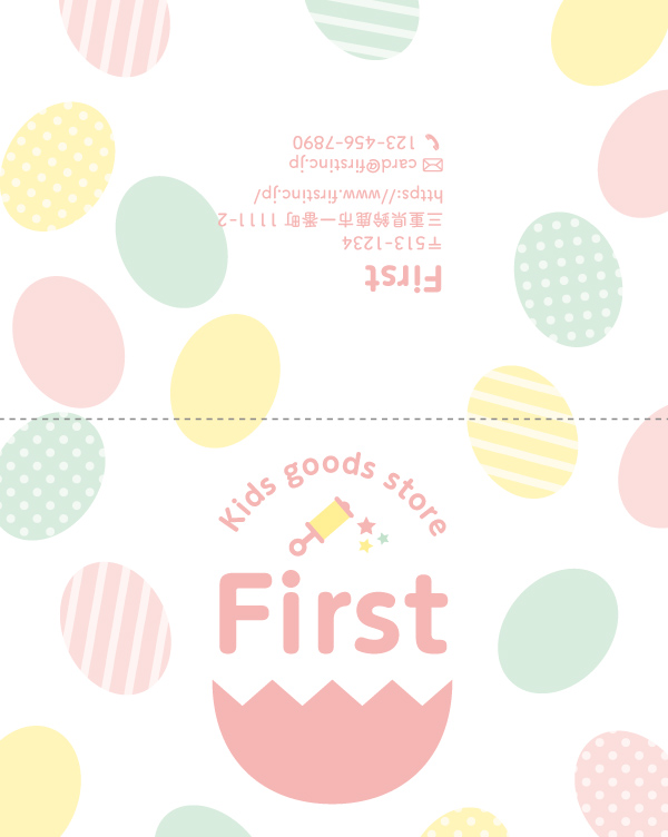 ソフトカラーで統一した優しいデザイン。タマゴの色や柄を変えて、それぞれの個性を出しています。色も多色使いとなりカラフルでにぎやかな印象。また、全体的に丸みを帯びたデザインなので柔らかい雰囲気も醸し出しています。