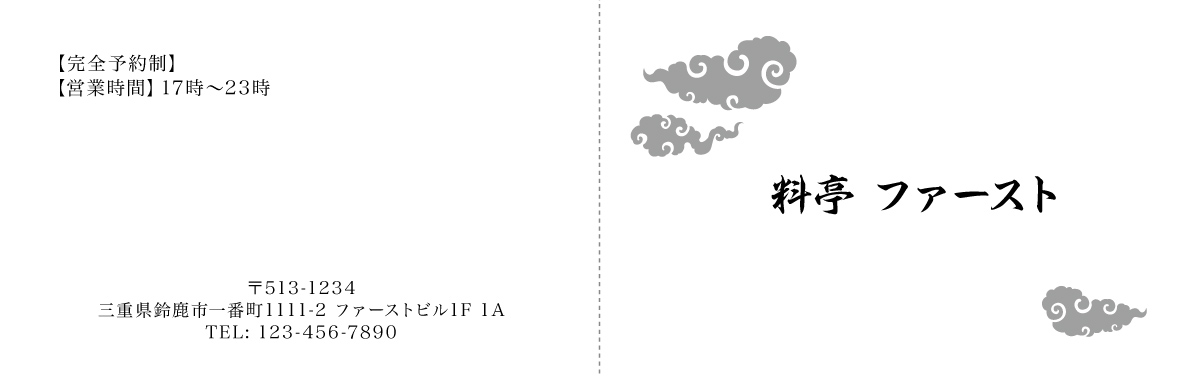 竜雲のオモテ面のカードタイプを下記の3種類のヨコ折り・タテ折り・カードタイプからから選択してください。