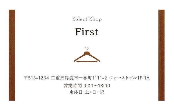 "木目の服飾のシンボルであるハンガーとラインがかっこいい、シンプルなデザインです。