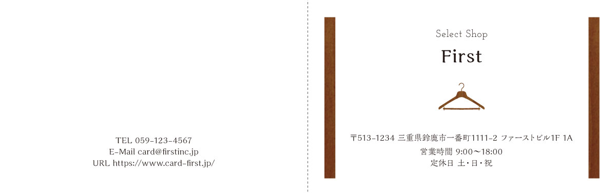 ハンガーのオモテ面のカードタイプを下記の3種類のヨコ折り・タテ折り・カードタイプからから選択してください。